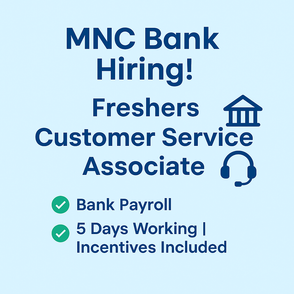 Hiring Freshers for Customer Service Associate – MNC Bank